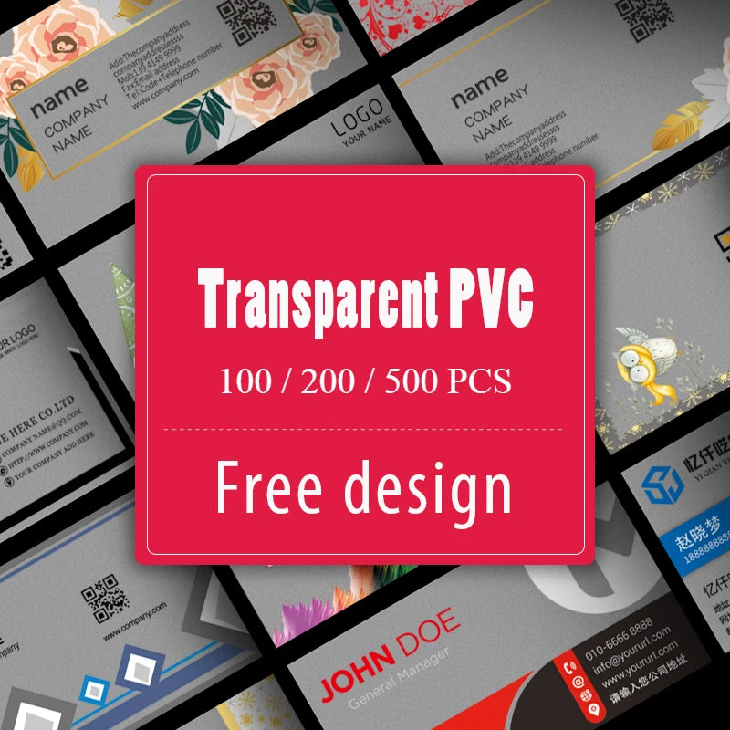 100/200/500 PCS Transparent PVC Business Card Colorful Printing Personalized LOGO Text Thank You Card Free DESIGN 0.38mm