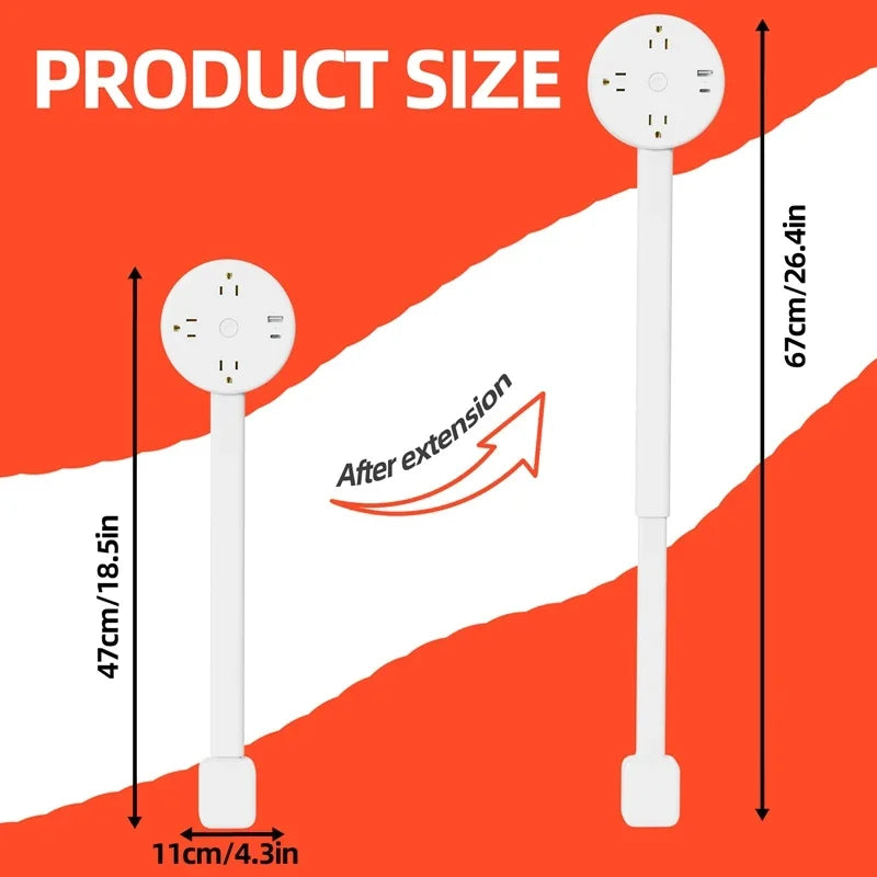 Rotates 180° Electrical Outlet Extender Adjustable Length Extension Cable US Plug Home Wall Desktop Ground Electric Socket