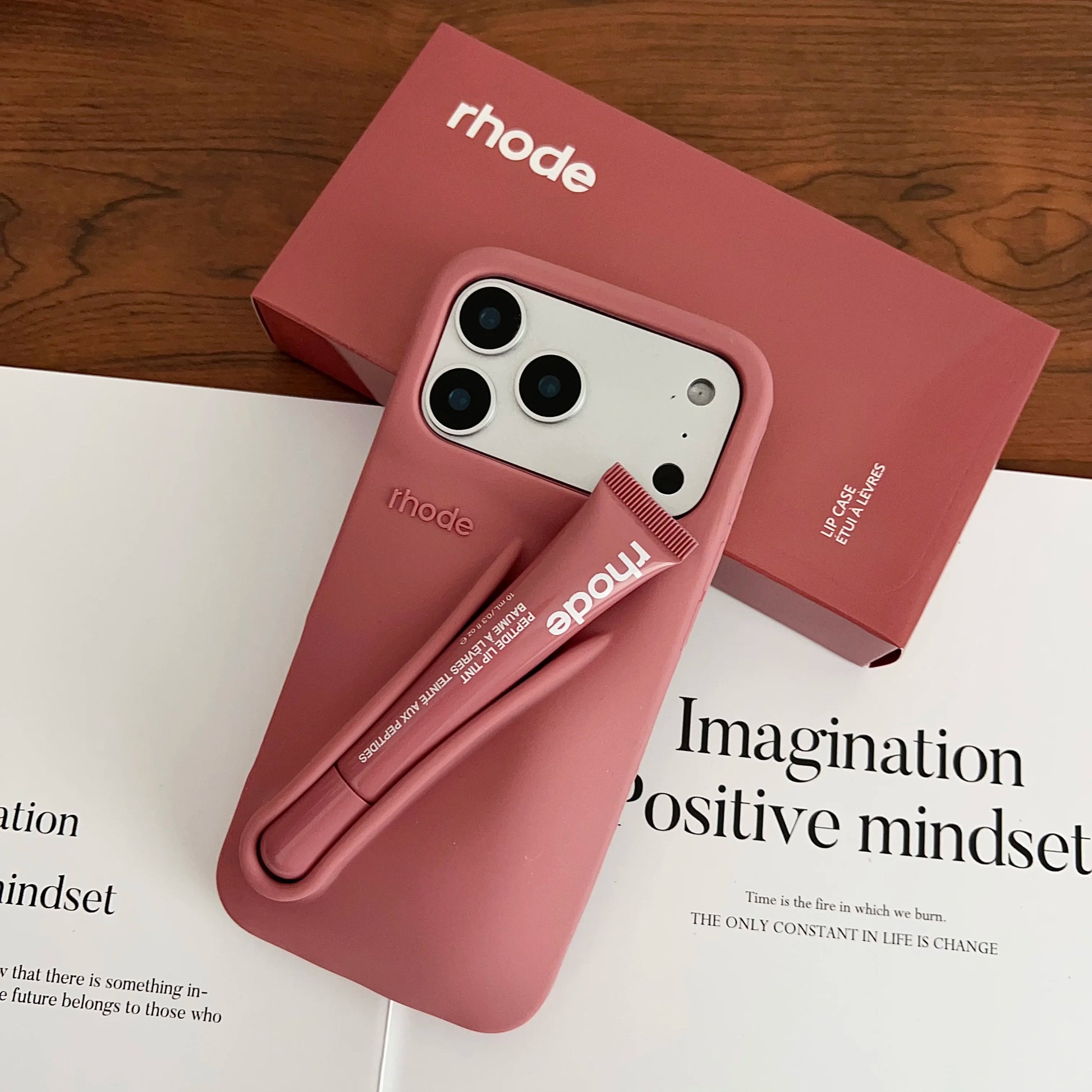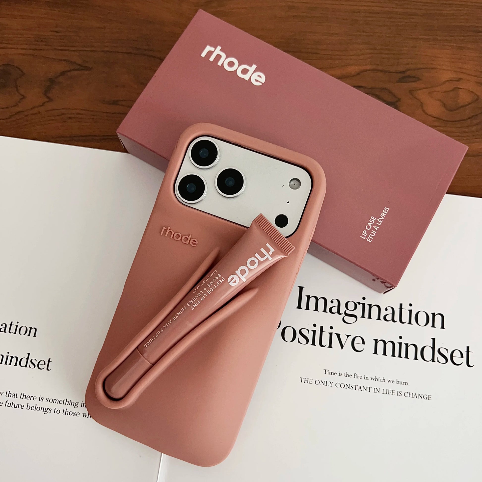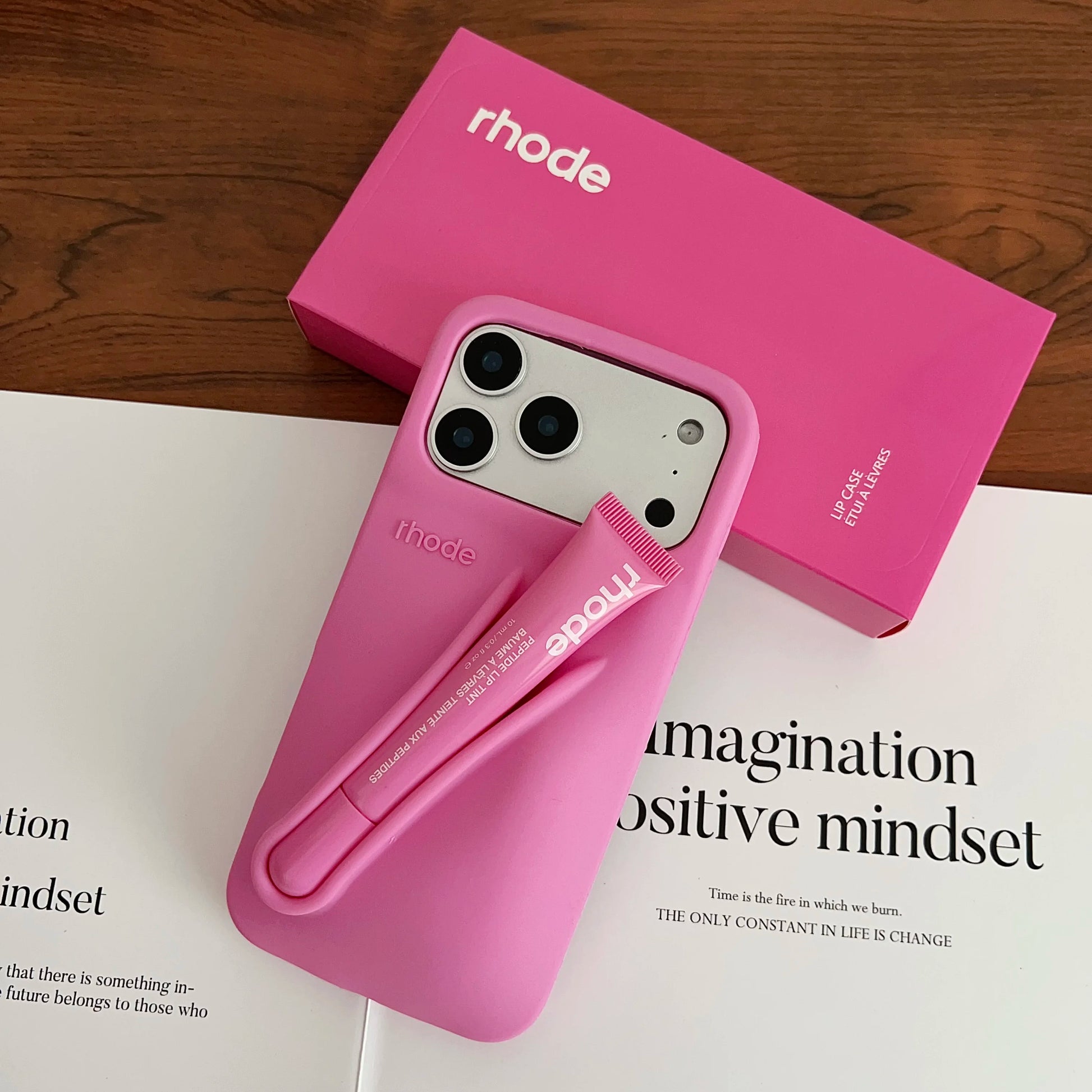 With Lip Gloss Phone Case for iPhone 17  Pro Max Plus Lipstick Silicone Lemontini Gray Ribbon Box Cover