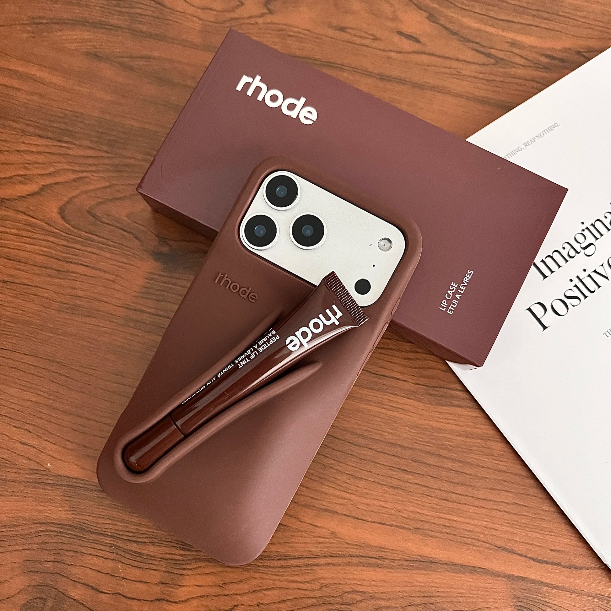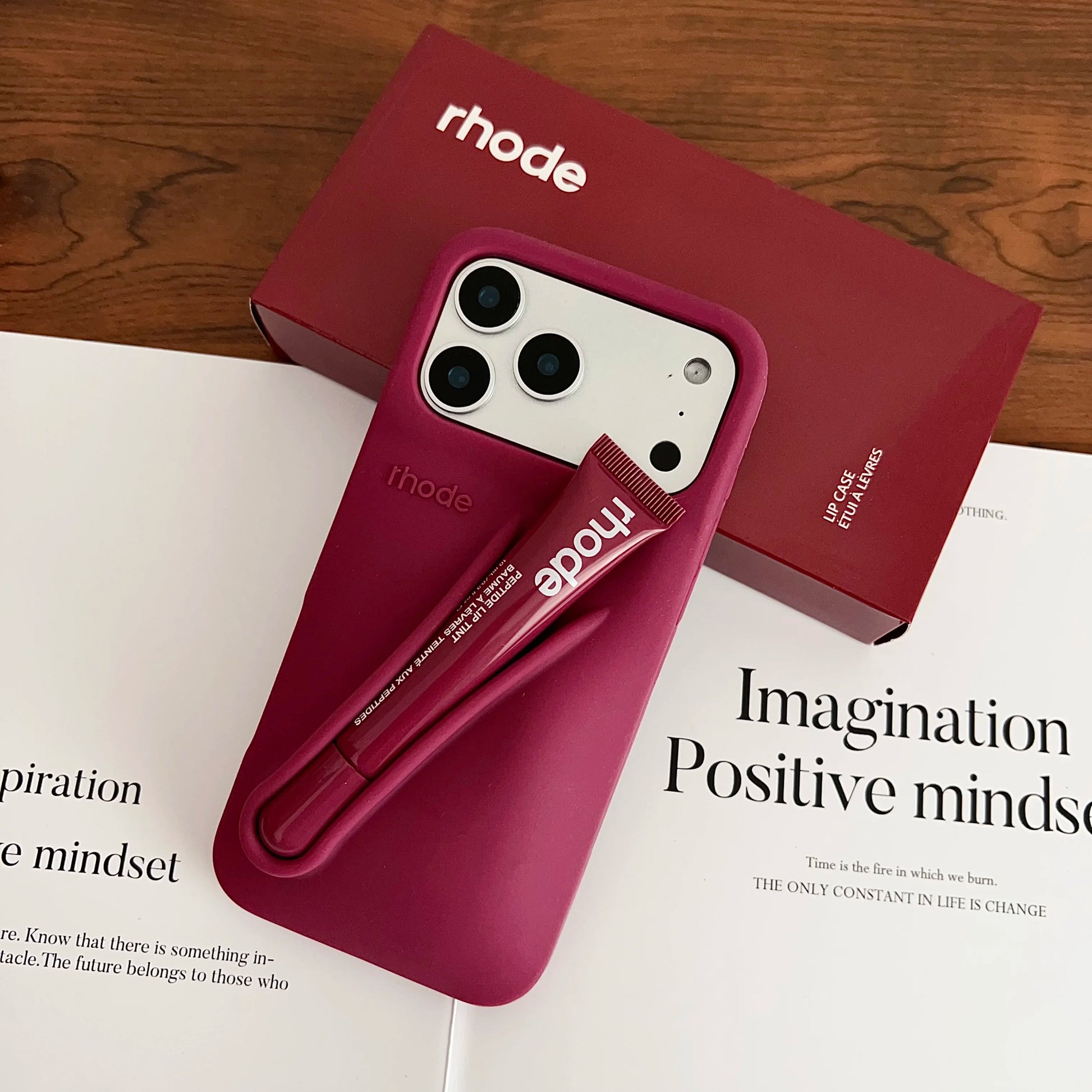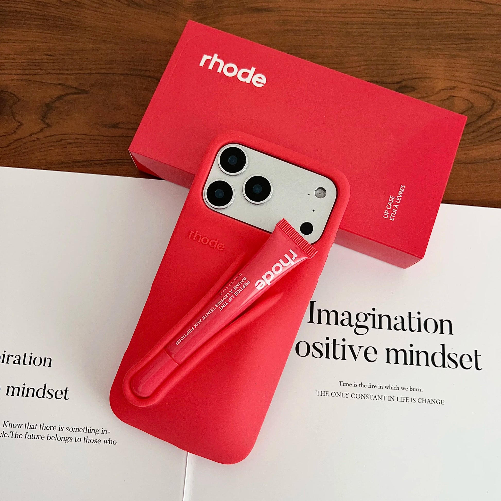With Lip Gloss Phone Case for iPhone 17  Pro Max Plus Lipstick Silicone Lemontini Gray Ribbon Box Cover