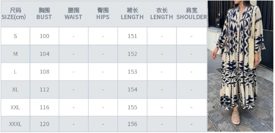 Women Print Long Sleeve Dress V-neck Long Sleeve High Waist Single Breasted Long Skirt New Holiday Loose Casual Women's Clothes
