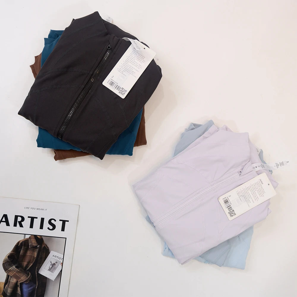 Yoga clothing, slim-fitting women's sports spring jacket, breathable quick-dry sports pure color jacket, female tight-fitting